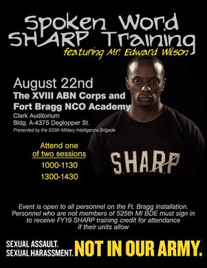 Edward offers Poetry presentations from a unique and captivating angle. His uncut, straight forward approach is thought provoking and serves as a call-for-action for all in attendance. His signature Poem, "The Perpetrator's Perspective", was recognized by Department of the Army, MG Keith L. Ware Communications Award, 1st Place; Long Form Production Video. The widely known Poem has been incorporated into sexual assault training throughout the military. By using this modernized method of speaking he has creatively designed a training outline that is impactful and attractive to all audiences, assurance to reach younger generations.